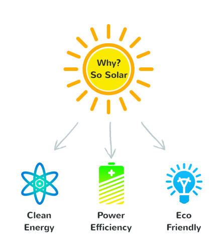 Năng lượng mặt trời là sạch mà không tạo ra carbon monoxide độc hại và các chất ô nhiễm khác. Lợi ích của việc sản xuất năng lượng điện từ năng lượng mặt trời là rất lớn về kinh tế, bảo vệ môi trường và tạo cơ hội việc làm.